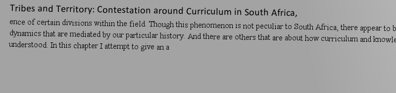 描述 | While much has been written about South African education, now, for the first time, gathered in one collection are glimpses of South African curriculum studies described by six distinctive points of view. |