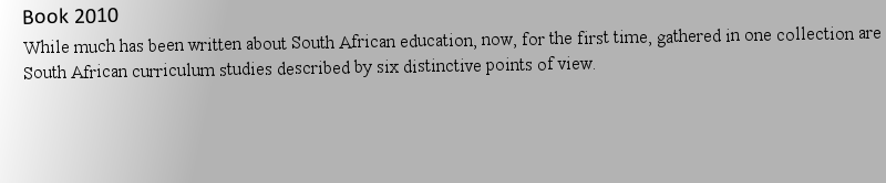 Titlebook: Curriculum Studies in South Africa; Intellectual Histori William F. Pinar Book 2010 Palgrave Macmillan, a division of Nature America Inc. 2 |