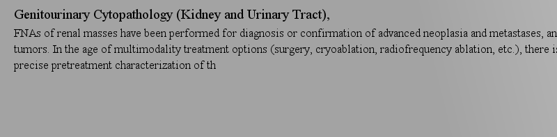 Esophagus, Stomach, and Pancreas, gastric and pancreatic lesions, staging of malignancy, and follow-up of patients. The sensitivity and specificity of cytology is increased by the concurrent use of radiologic imaging (endoscopic ultrasound, ultrasound, computed tomography, and magnetic resonance imaging), immunocytochemistry, and m