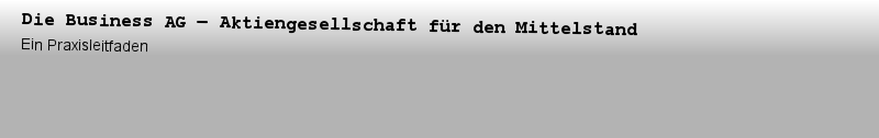 Titlebook: Die Business AG — Aktiengesellschaft für den Mittelstand; Ein Praxisleitfaden Stefan Schnobrich,Michael Barz Book 2001 Betriebswirtschaftl |