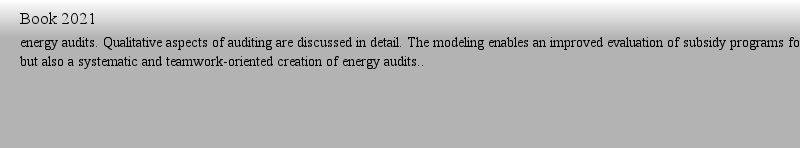 | 描述 | .Existing literature on energy audits consists almost exclusively of practical guides. This book looks at energy auditing from a scientific perspective. It discusses the nature of energy audits and provides a universally applicable data model as a basis for automatic processing of a large number of energy audits. Qualitative aspects of auditing are discussed in detail. The modeling enables an improved evaluation of subsidy programs for energy audits, but also a systematic and teamwork-oriented creation of energy audits.. |
