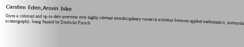 概述Gives a coherent and up-to-date overview over highly relevant interdisciplinary research activities between applied mathematics, meteorology, and physical oceanography, being funded by Deutsche Forsch