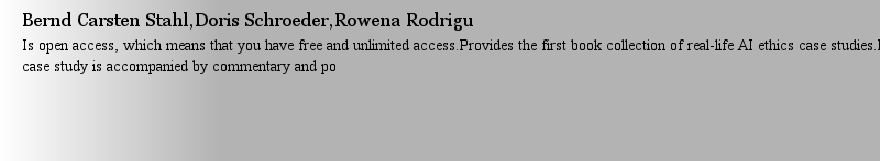Titlebook: Ethics of Artificial Intelligence; Case Studies and Opt Bernd Carsten Stahl,Doris Schroeder,Rowena Rodrigu Book‘‘‘‘‘‘‘‘ 2023 The Editor(s) |
