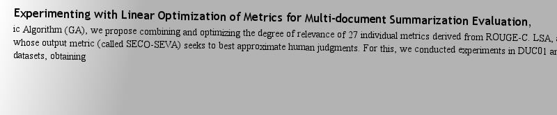 Titlebook: Evaluation of Text Summaries Based on Linear Optimization of Content Metrics; Jonathan Rojas-Simon,Yulia Ledeneva,Rene Arnulfo G Book 2022 |