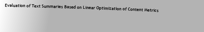 Titlebook: Evaluation of Text Summaries Based on Linear Optimization of Content Metrics; Jonathan Rojas-Simon,Yulia Ledeneva,Rene Arnulfo G Book 2022 |