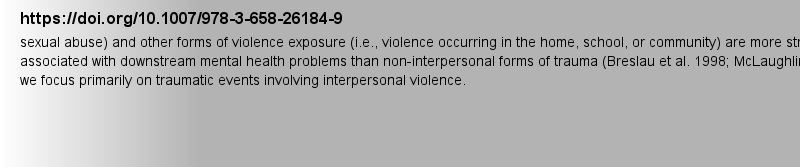 | 書目名稱 | Evidence-Based Treatments for Trauma Related Disorders in Children and Adolescents | | 編輯 | Markus A. Landolt,Marylène Cloitre,Ulrich Schnyder | | 視頻video | http://file.papertrans.cn/318/317580/317580.mp4 | | 概述 | Presents all relevant evidence-based treatment approaches.Features informative case presentations.Highlights special challenges.Covers treatment in specific settings.Has a strong scientific background | | 圖書封面 |  | | 描述 | .This handbook presents the current evidence-based psychological treatments for trauma related disorders in childhood and adolescence and in addition provides clearly structured, up-to-date information on the basic principles of traumatic stress research and practice in that age group, covering epidemiology, developmental issues, pathogenetic models, diagnostics, and assessment. Each of the chapters on treatment, which form the core of the book, begins with a summary of the theoretical underpinnings of the approach, followed by a case presentation illustrating the treatment protocol session by session, an analysis of special challenges typically encountered in implementing this treatment, and an overview of the current evidence base for the treatment approach. A special section considers modern treatments in particular settings, such as schools, hospitals, and juvenile justice systems, and the concluding chapters provide an integrative discussion on how to treat traumatized childrenand adolescents and an outlook. The book will be invaluable for clinical child and adolescent psychologists, child and adolescent psychiatrists, psychotherapists, and other mental health professionals wo | | 出版日期 | Book 20171st edition | | 關(guān)鍵詞 | Child Maltreatment; Childhood trauma; Cognitive Therapy; PTSD; Parent-Child Interaction Therapy; Posttrau | | 版次 | 1 | | doi | https://doi.org/10.1007/978-3-319-46138-0 | | isbn_softcover | 978-3-319-83450-4 | | isbn_ebook | 978-3-319-46138-0 | | copyright | Springer International Publishing Switzerland 2017 |