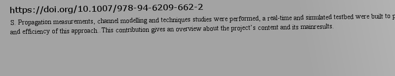 ATDMAS. Propagation measurements, channel modelling and techniques studies were performed, a real-time and simulated testbed were built to prove feasibility and efficiency of this approach..This contribution gives an overview about the project’s content and its mainresults.