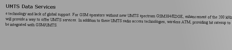 Core Concepts in Abstract Algebra,e technology and lack of global support. For GSM operators without new UMTS spectrum GSM384/EDGE, enhancement of the 200 kHz GSM carrier, will provide a way to offer UMTS services. In addition to these UMTS radio access technologies, wireless ATM, providing bit ratesup to 20 Mbit/s, could be integrated with GSM/UMTS.