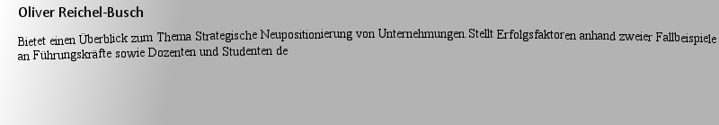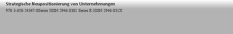 Titlebook: Strategische Neupositionierung von Unternehmungen; Erkl?rung eines erfo Oliver Reichel-Busch Book 2005 Der/die Herausgeber bzw. der/die Aut |
