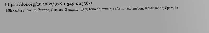關(guān)鍵詞 | 16th century; empire; Europe; German; Germany; Italy; Munich; music; reform; reformation; Renaissance; Spain; te |